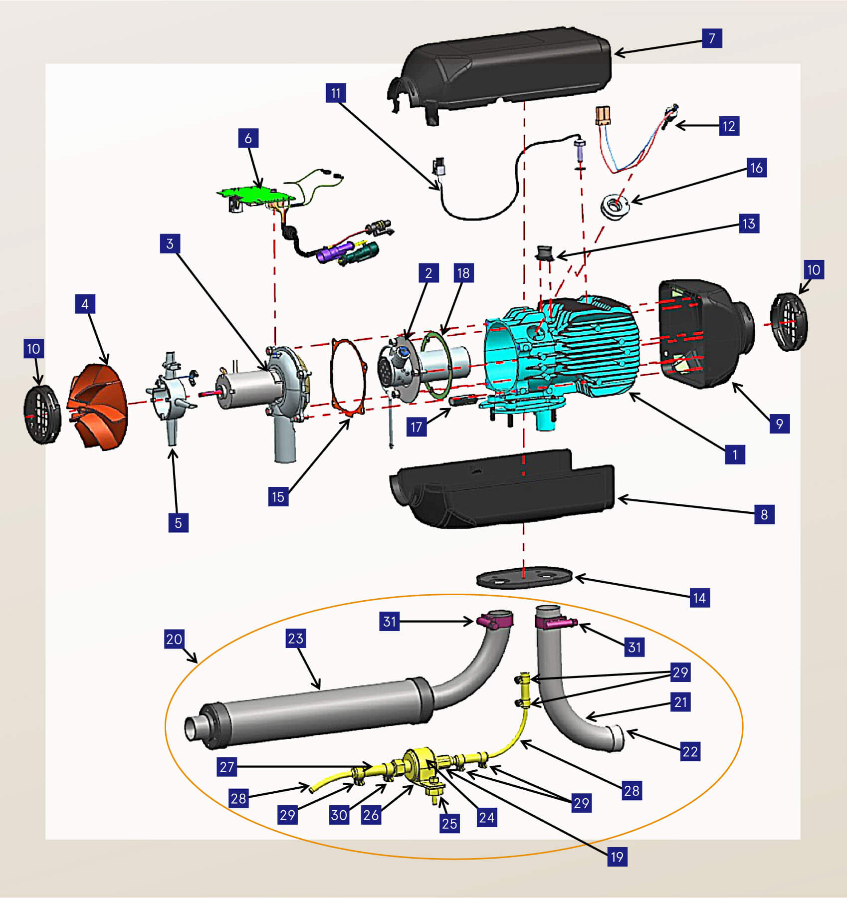 この図はATESO ALFAの基本構成部品となります。BREEZE WINDIV についてはお問い合わせください。
