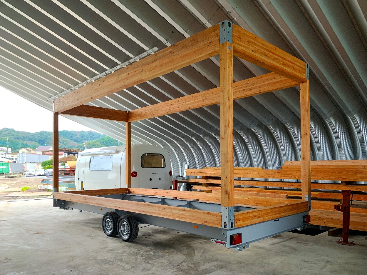 [木軸コンテナフレーム MOKUJIKU] + [専用マルチコンテナトレーラー]